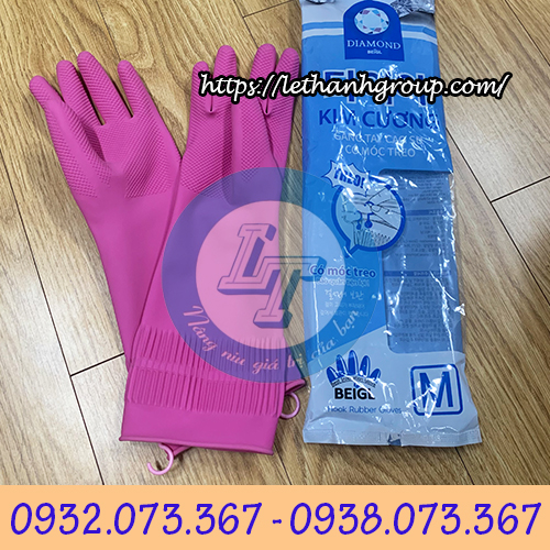 Tên gọi: Găng tay cao su gia dụng có móc treo/ Găng tay cao su kim cương có móc treo